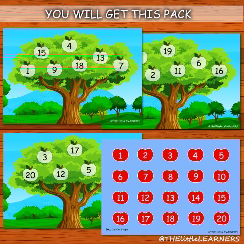 1. This product will help kids in identifying and learning numbers from 1 to 20 with fun activity of matching apples with tree.